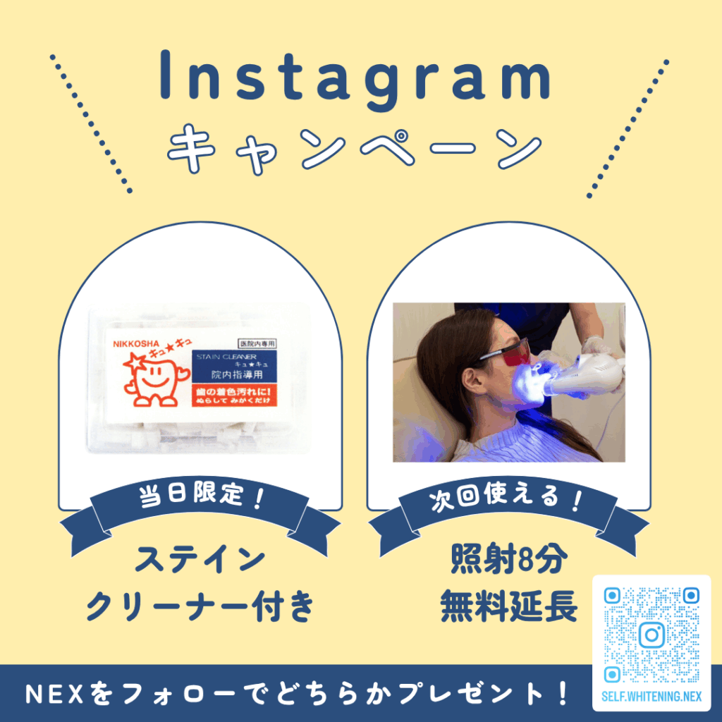 こんにちは♪ セルフホワイトニング専門店NEX 津田沼店です。 ただいまNEXでは、公式Instagramをフォローしてくださったお客様に、ちょっとお得なプレゼントをご用意しています! フォローしていただくと、以下のどちらか1つをお選びいただけます☆ ①当日限...